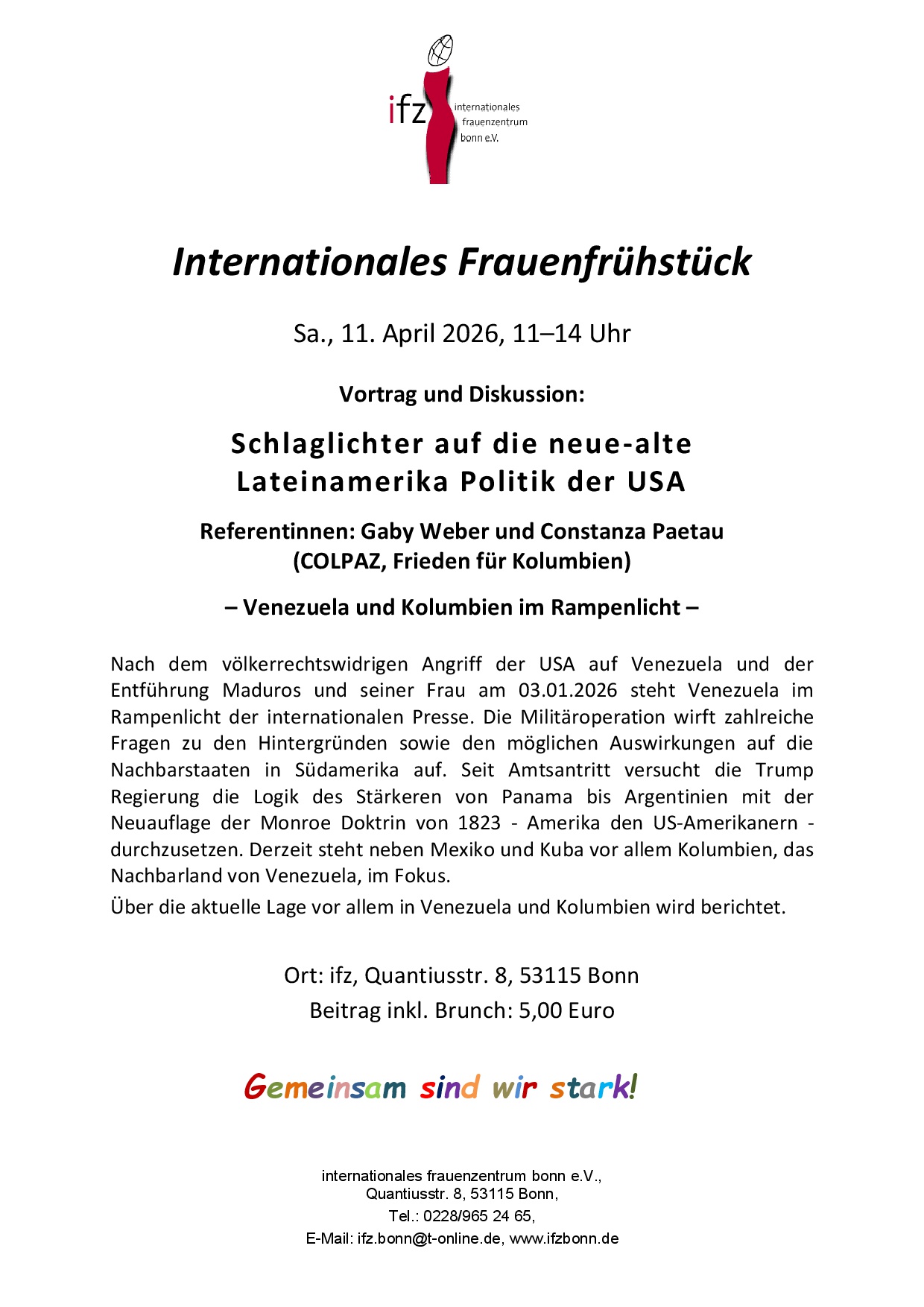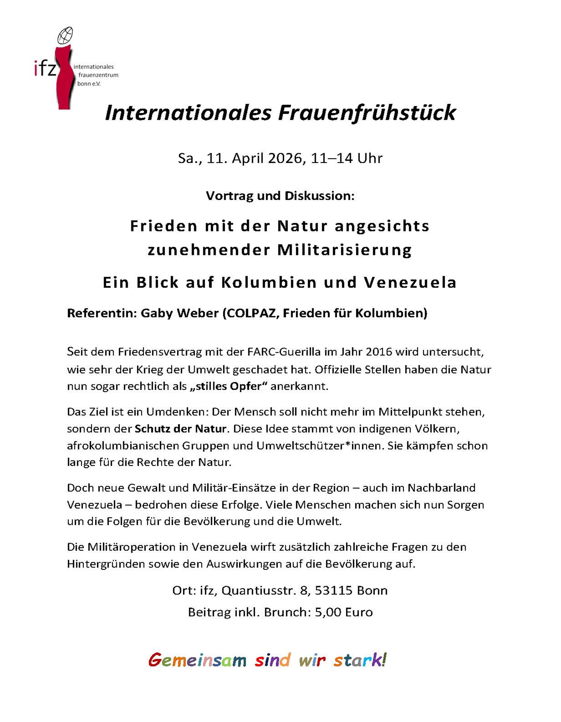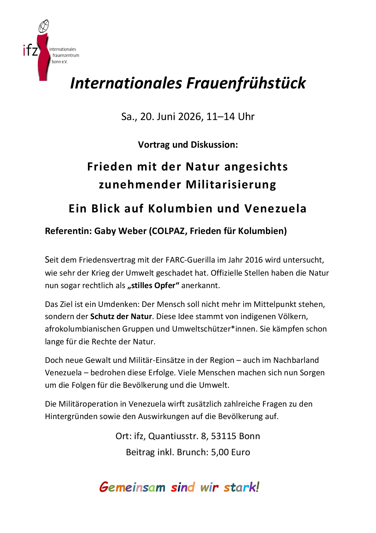 - Im ifz treffen sich regelmäßig Frauen und Organisationen, um Aktivitäten für ein tolerantes.und gleichberechtigtes Zusammenleben durchzuführen.